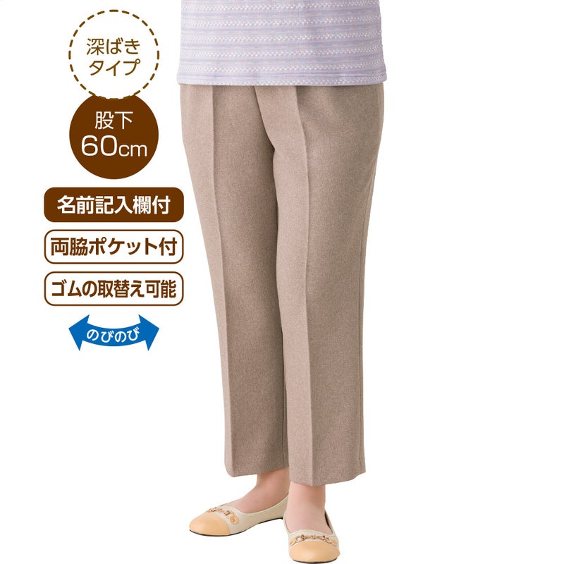 股上が深めに設計されていて、ゆったりと腰回りを覆うので、しゃがんでも背中や下着が見えてしまう心配がありません。