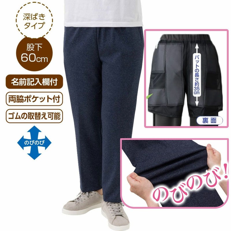 低反発素材(衝撃を吸収する不織布を重ねた2mmのパッド)をパンツの裏側に縫いつけることで、腰やお尻だけでなく横からの摩擦・圧迫も軽減。