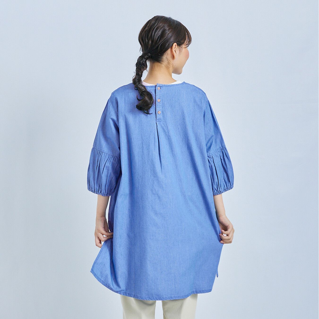 ゆったりとしたネックまわりですっぽりと簡単に着用できます。