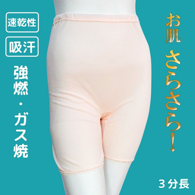 3. 婦人綿100%強撚ガス焼3分長サイズ M~LL 日本製