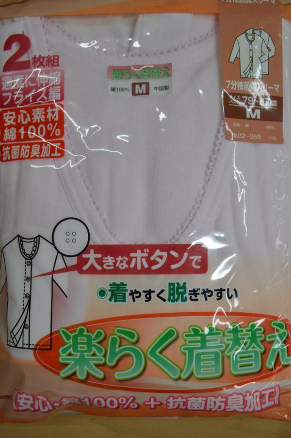 6. 婦人7分袖前開大きいボタン肌着2枚組M・L・LL