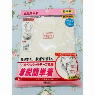 着やすく脱ぎやすい、ボタン部分がワンタッチテープになっている 着脱簡単な肌着です。後ろ身頃が長いので腰が曲がっている方にも最適です。綿100%の抗菌防臭+消臭加工となっており、入院時、介護用の肌着にもとても便利です! 品質の良いカタクラ、キャロンの肌着です。 サイズ M/L/LL(LLは価格が違います)
