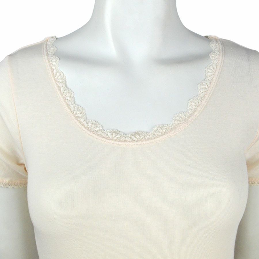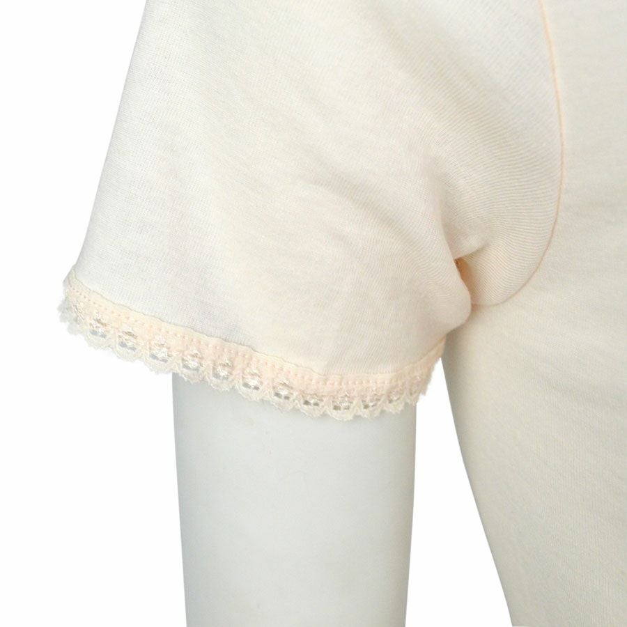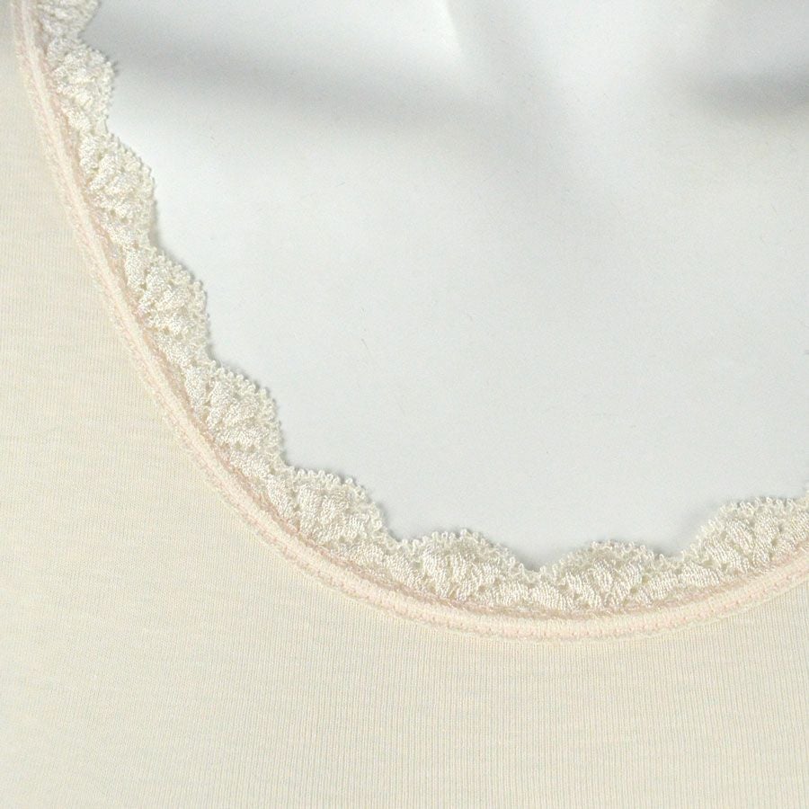 綿100%でお肌への負担も少なく、胸元レースのさり気ないデザインがポイント。