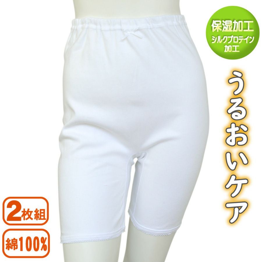 婦人保湿加工うるおいケア3分丈ズロース2枚組(シロ)
