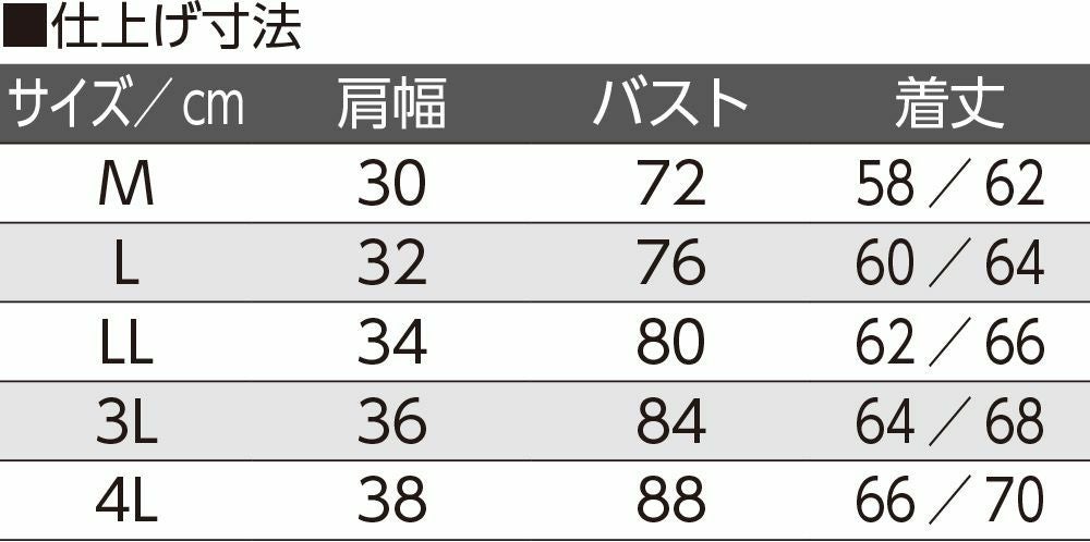 サイズ S、M、L、LL、3L、44L
