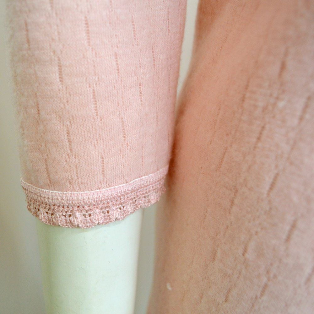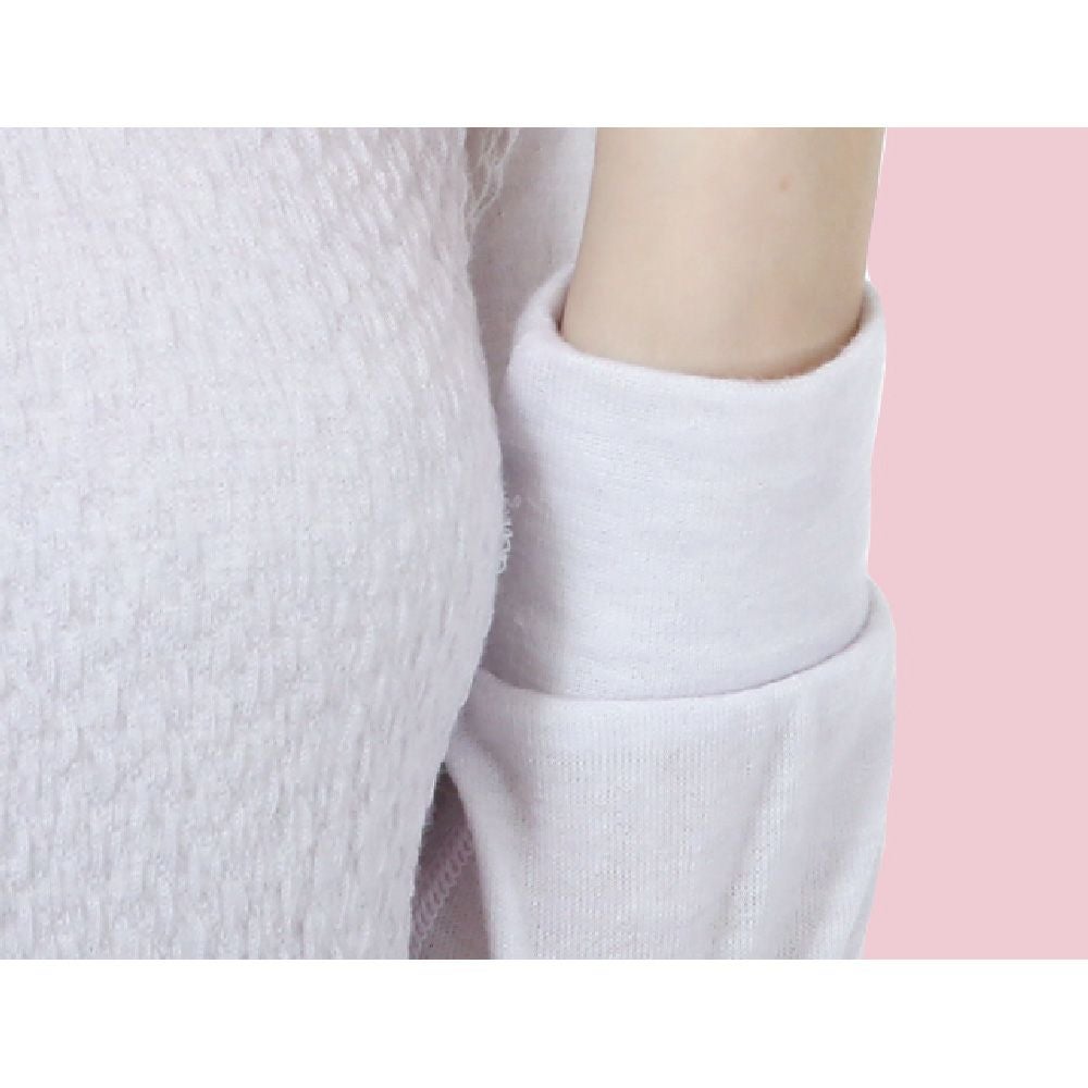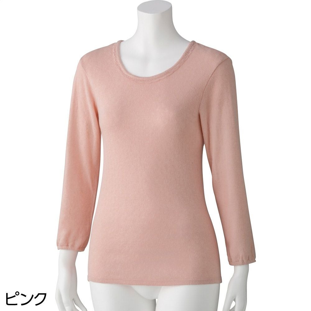 遠赤外線効果がある「ホットレイ糸」を使用。可愛くて温かい、外出時にインナーとして使用しても響きにくいあったかウェアです。