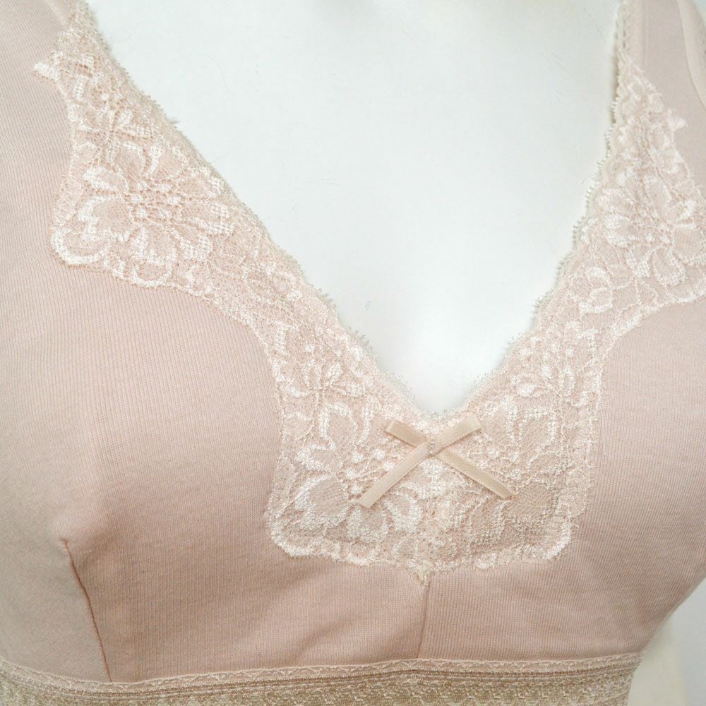 婦人スーピマ綿ソフトカップ付きラン形肌着M~2L ピーチ又はベージュ色お任せ受注