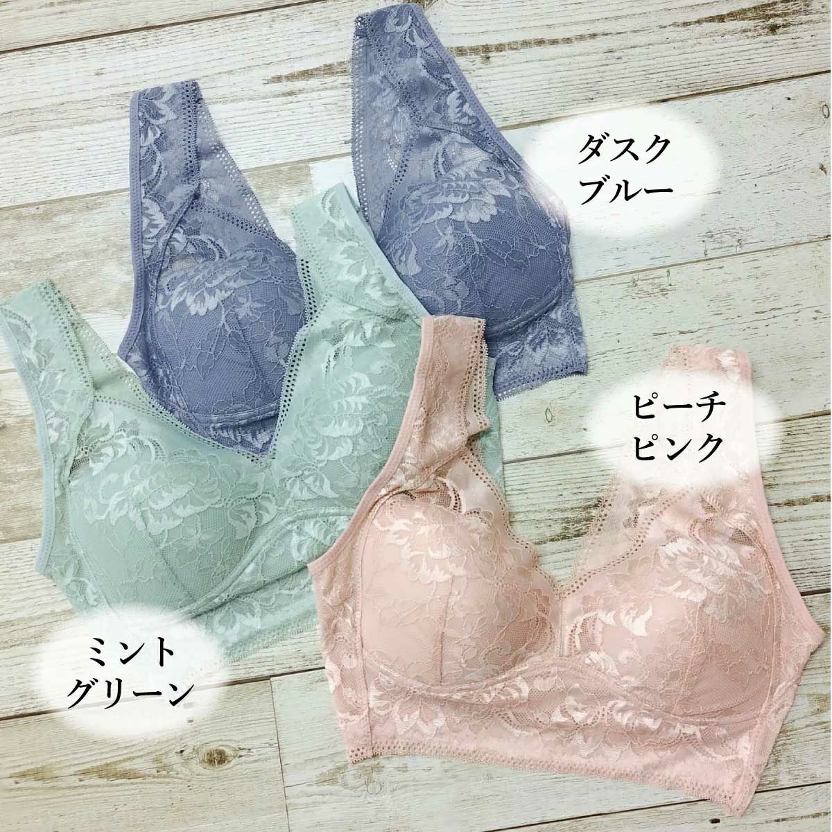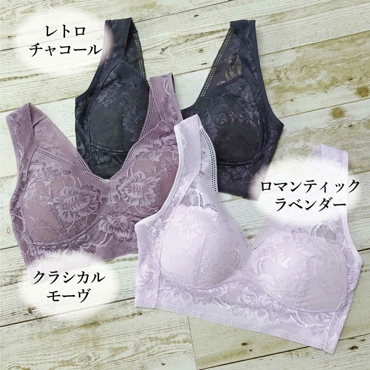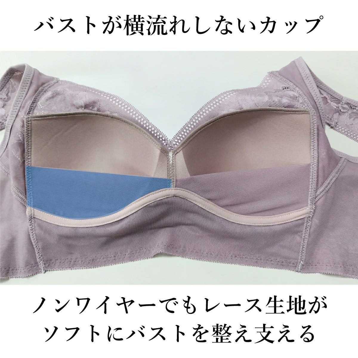 ノンワイヤーでもレース生地がソフトにバストを整えます。