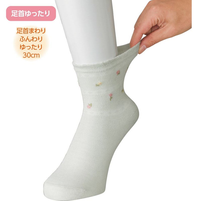 涼しい素材の靴下に花柄のデザインでおしゃれに快適に。