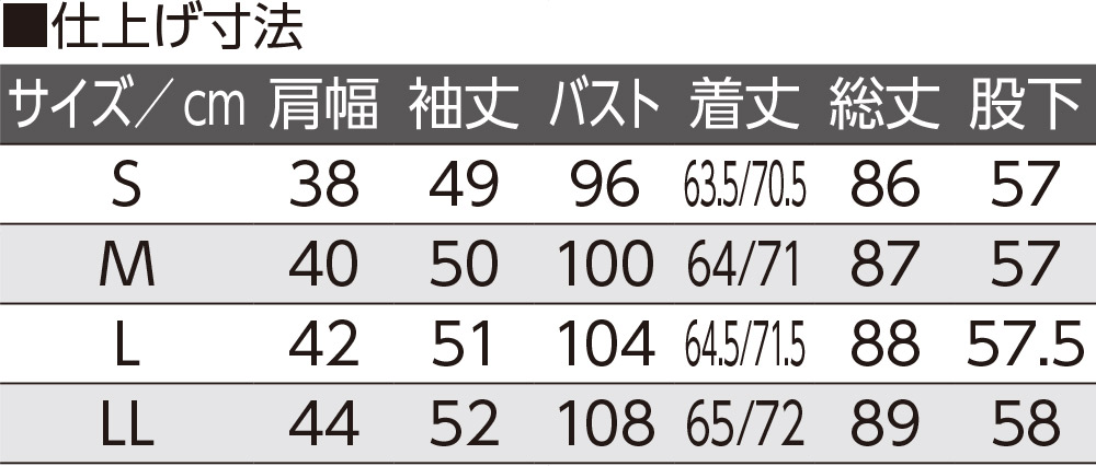 ■ JIS規格 ウエスト・ヒップ サイズ表(cm)