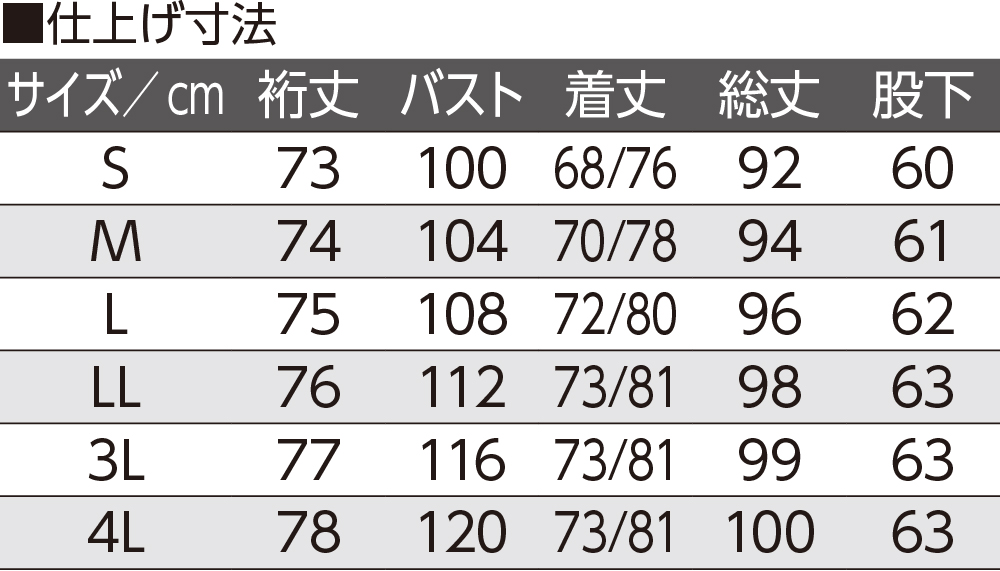 【サイズ】S、M、L、LL、3L、4L