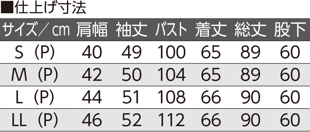 【サイズ】S(P)、M(P)、L(P)、LL(P)