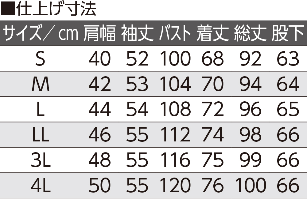 【サイズ】S、M、L、LL、3L、4L