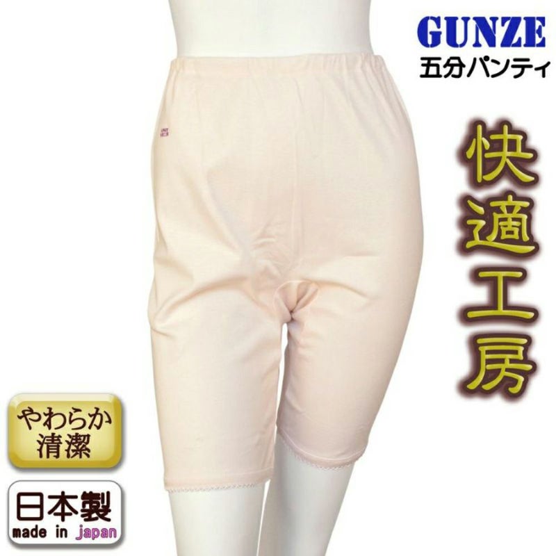 下着の老舗であるグンゼの集大成として、「着心地」と「清潔感」を追求した下着「快適工房」などの主要ブランドからお届けする、快適工房五分パンティでございます。