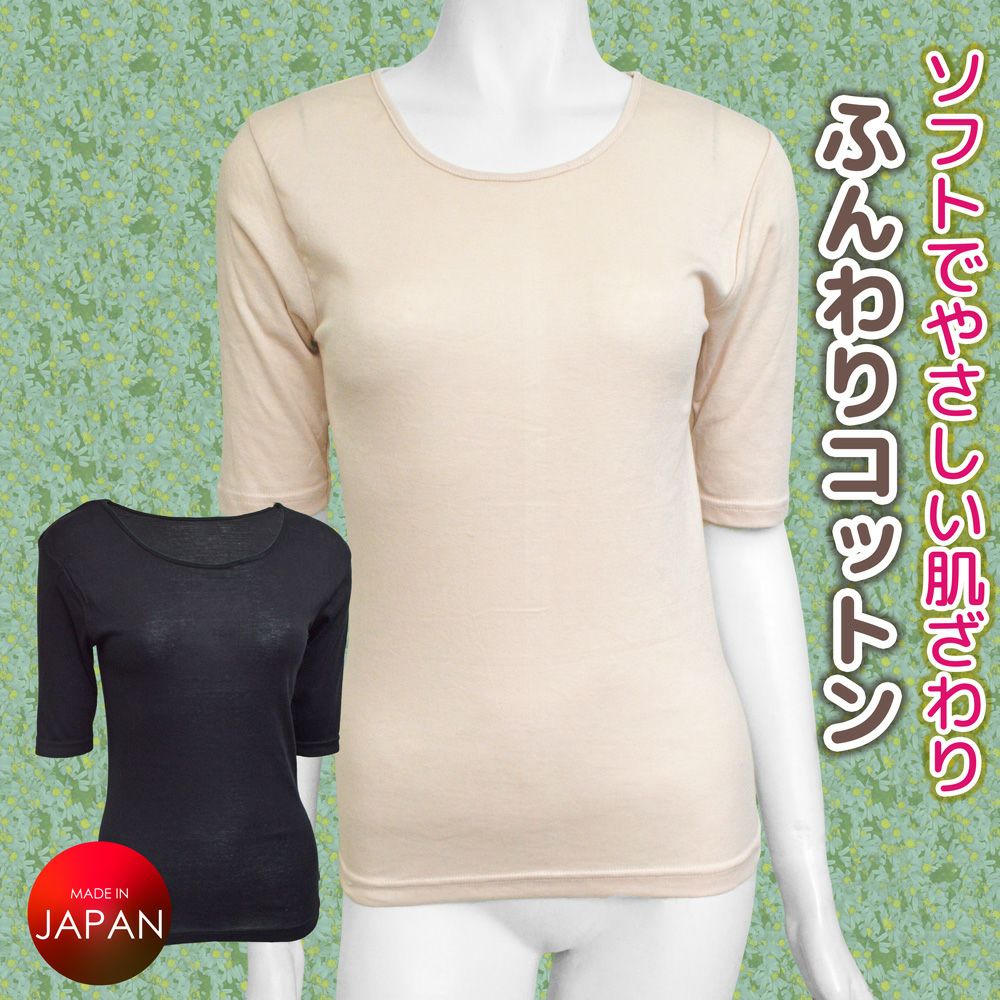他の画像を見る やさしい肌ざわり 婦人ふんわりコットン3分袖インナー 綿100% 大きいサイズあり ¥ 1,980 税込 在庫なし 絹のような光沢感と滑らかな肌ざわりが特徴です。 サイズ M、L、LL 日本製 カートに入れる お気に入りに登録する