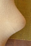 ご好評をいただいております片手ではけるソックスの冬向き、毛混タイプが入荷してまいりました。履き口が広いのでとても履きやすくなっております。つま先を入れていただいたらかかと側にあるつまみ部分を引っ張っていただくと、スッと履けます。履いたときは締め付けず、ゆったりとお履きいただけます。お年寄りの方や介護にもおすすめです。