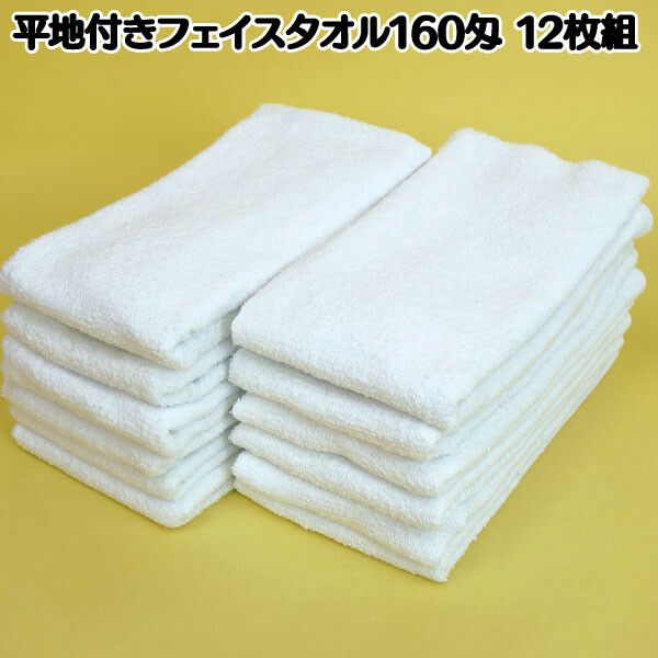 平地付きフェイスタオル 160匁 ホワイト 無地 業務用フェイスタオル 綿100% 激安タオル