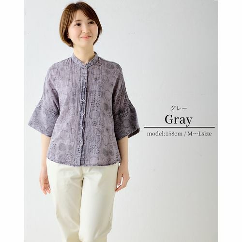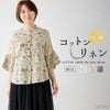 【インド綿】コットンリネン レディース トップス ドット柄 刺繍風 プリントシャツブラウス 涼しい