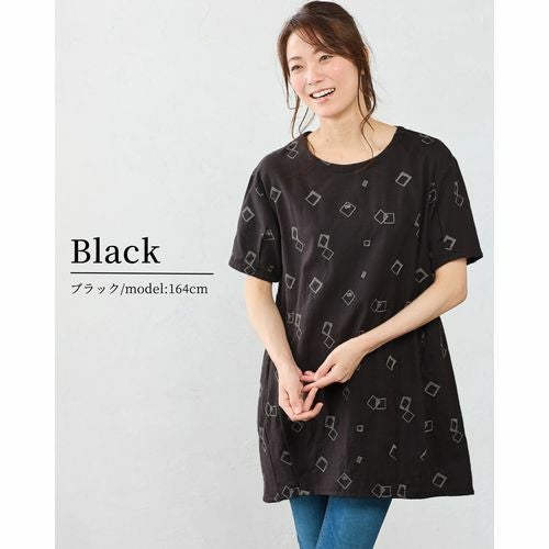 目を惹く刺繍でシンプルになりがちな春夏のコーデに華やぎをプラスして カジュアルにも上品スタイルにもこなせ、 ゆったりシルエットと5分袖で体型カバーにも使えるアイテムです。