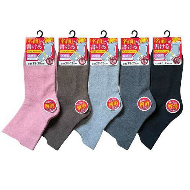 【ご年配や介護用に最適×暖か】婦人 毛混 『名前が書ける』 ベロ付 ゴムなしゆったりソックス