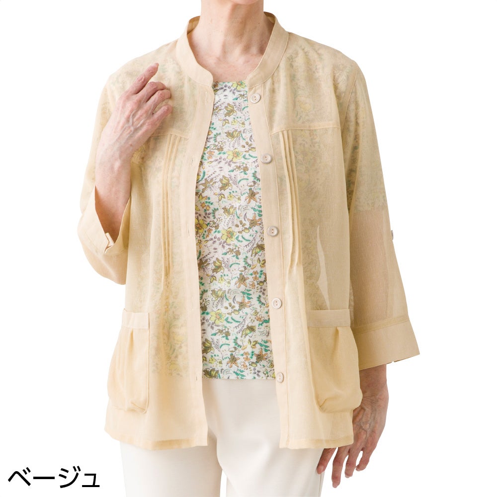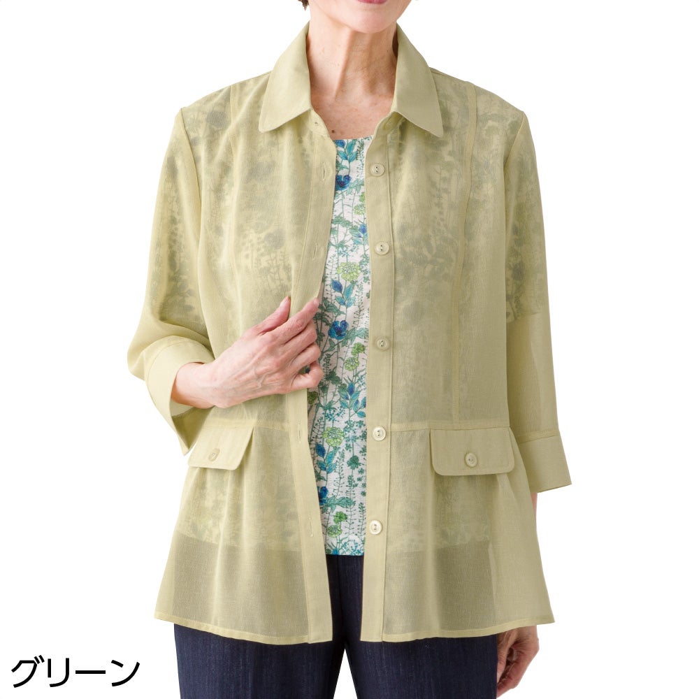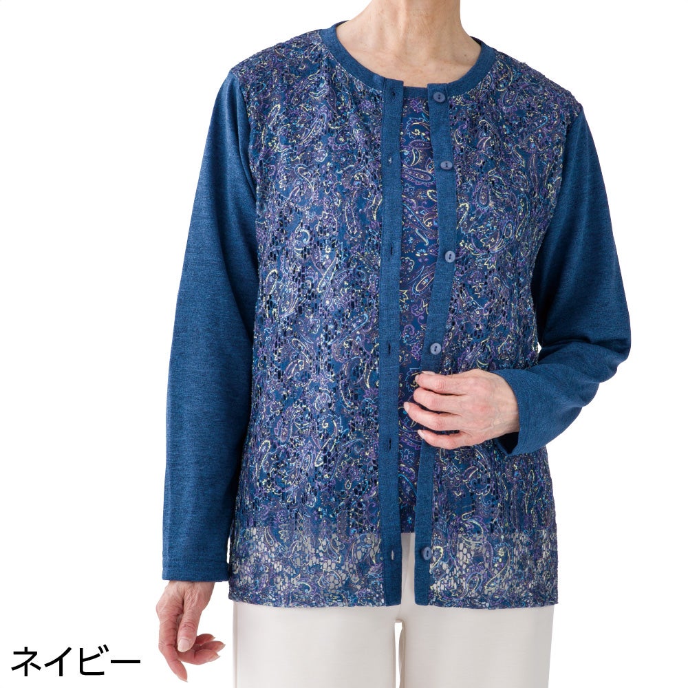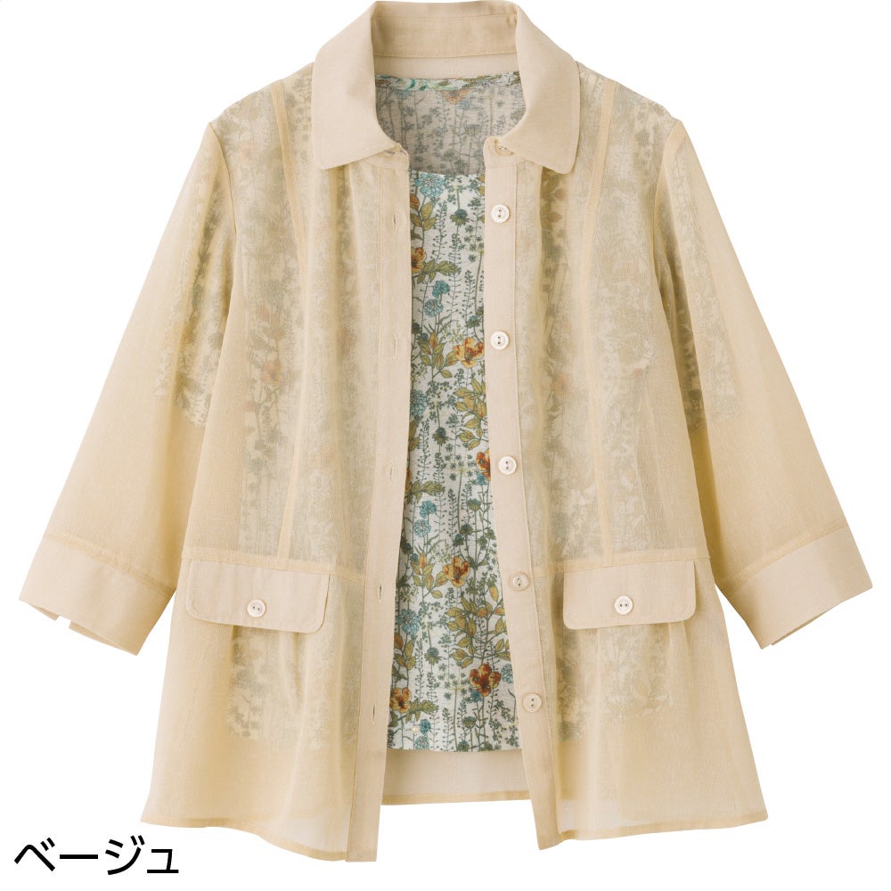 オーガンジー花柄切替カーディ(婦人)