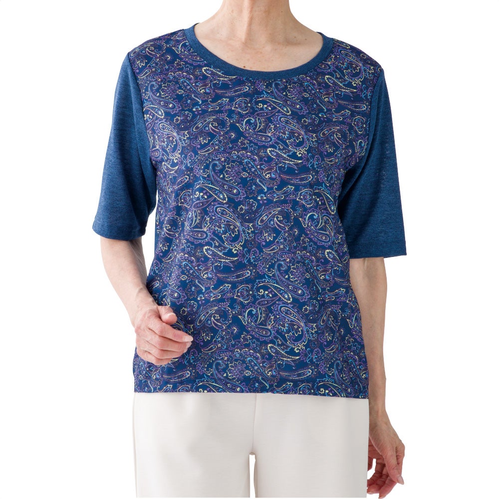 6分袖後ろ長めオパール柄Tシャツ(婦人)
