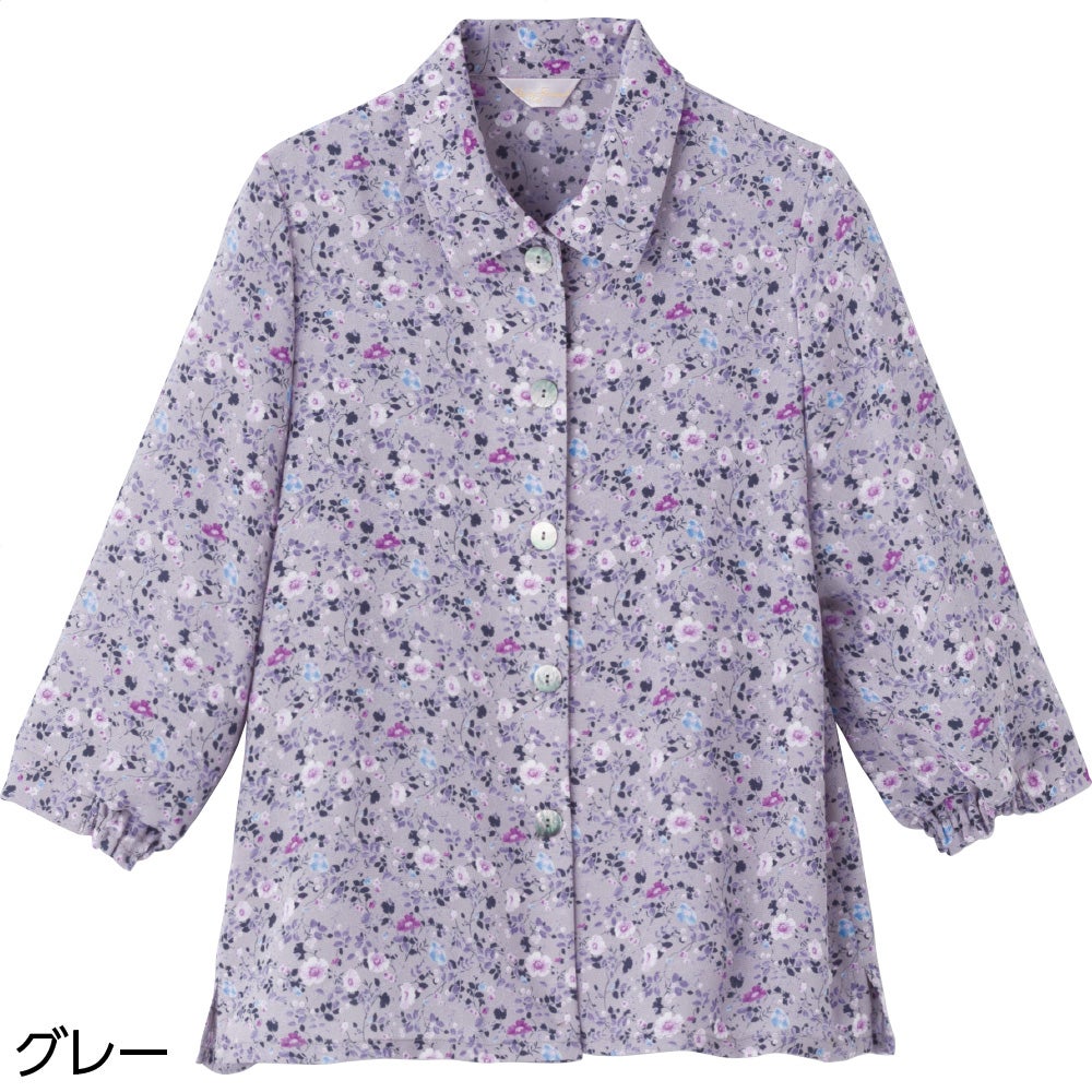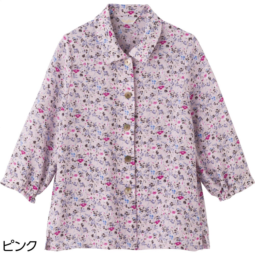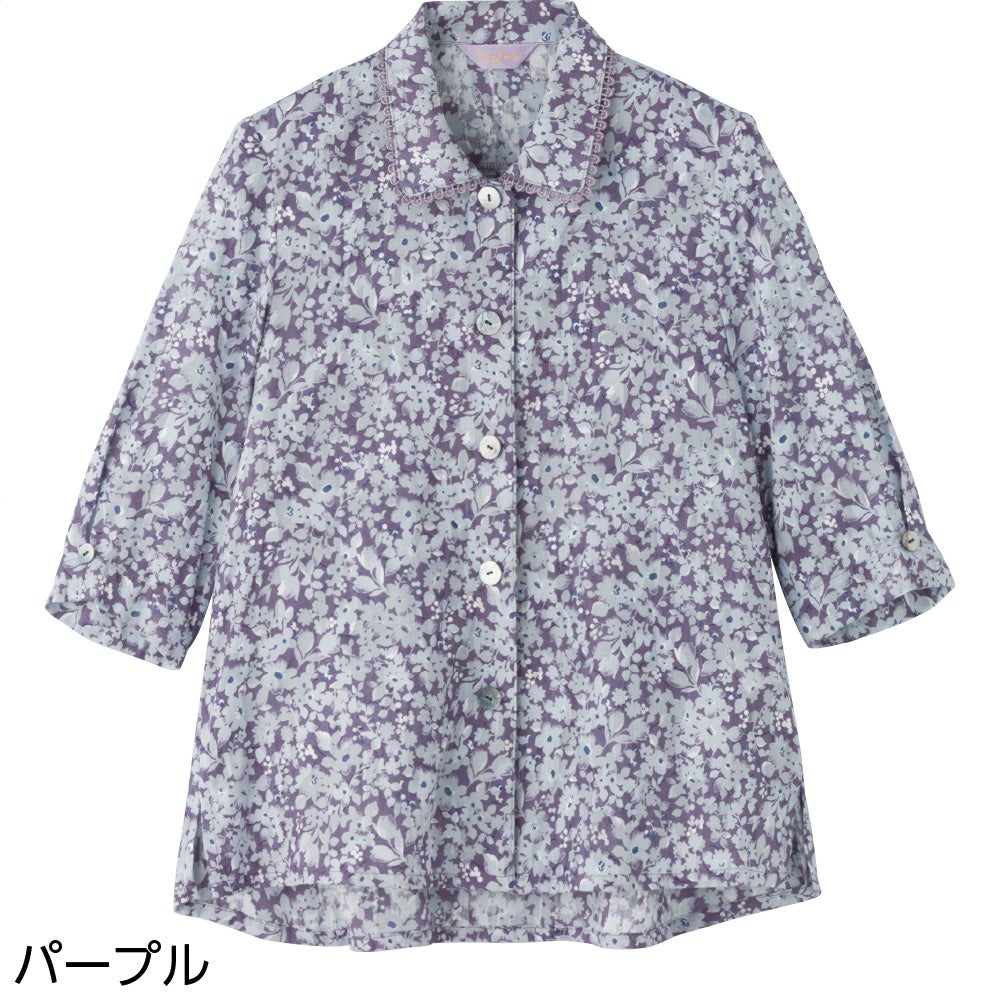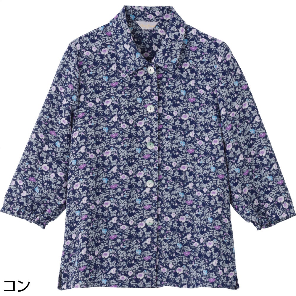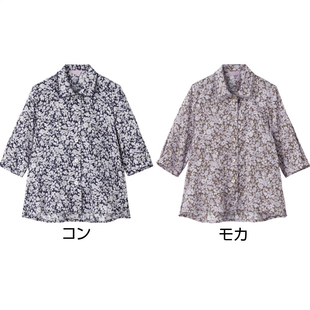 7分袖綿100%花柄ブラウス(婦人)