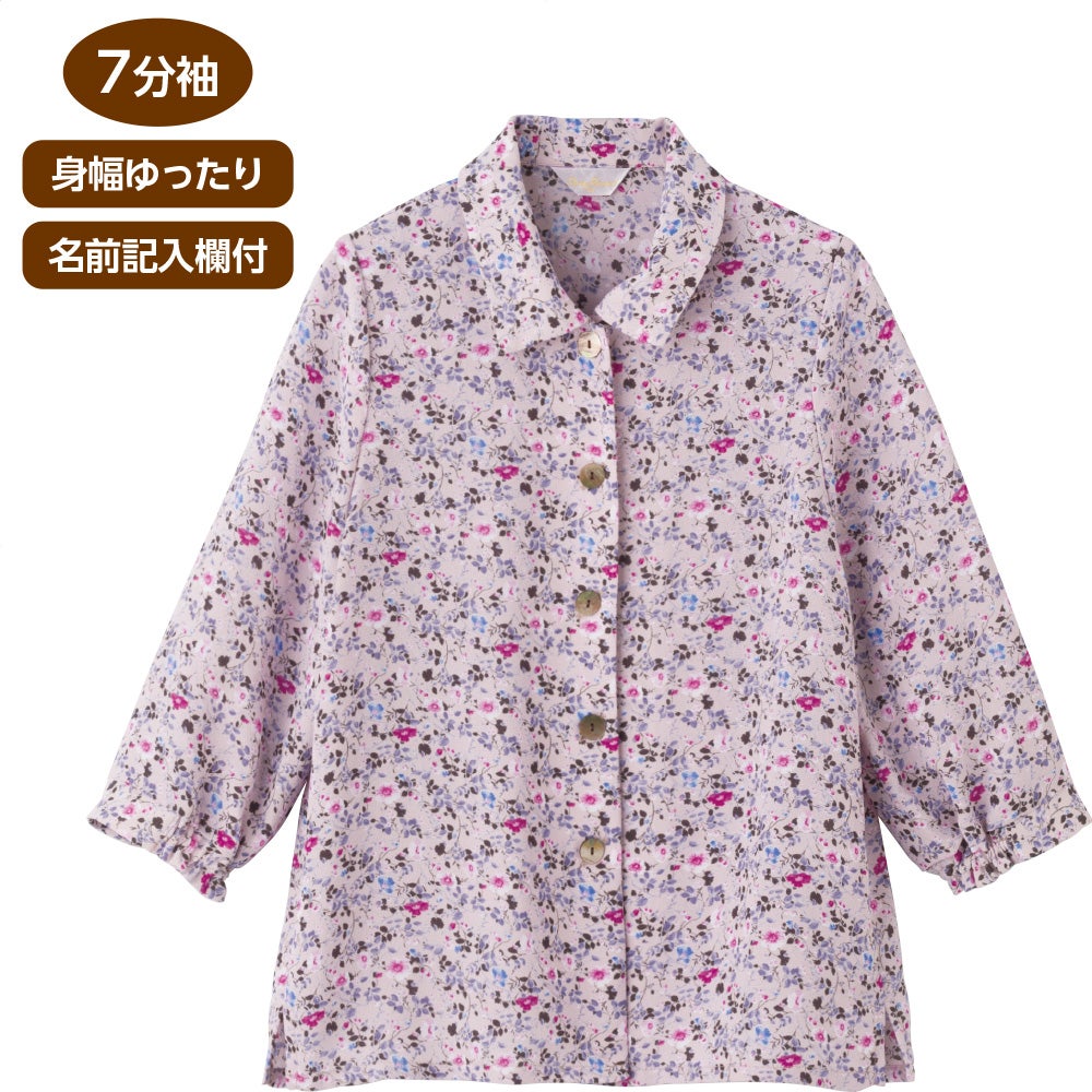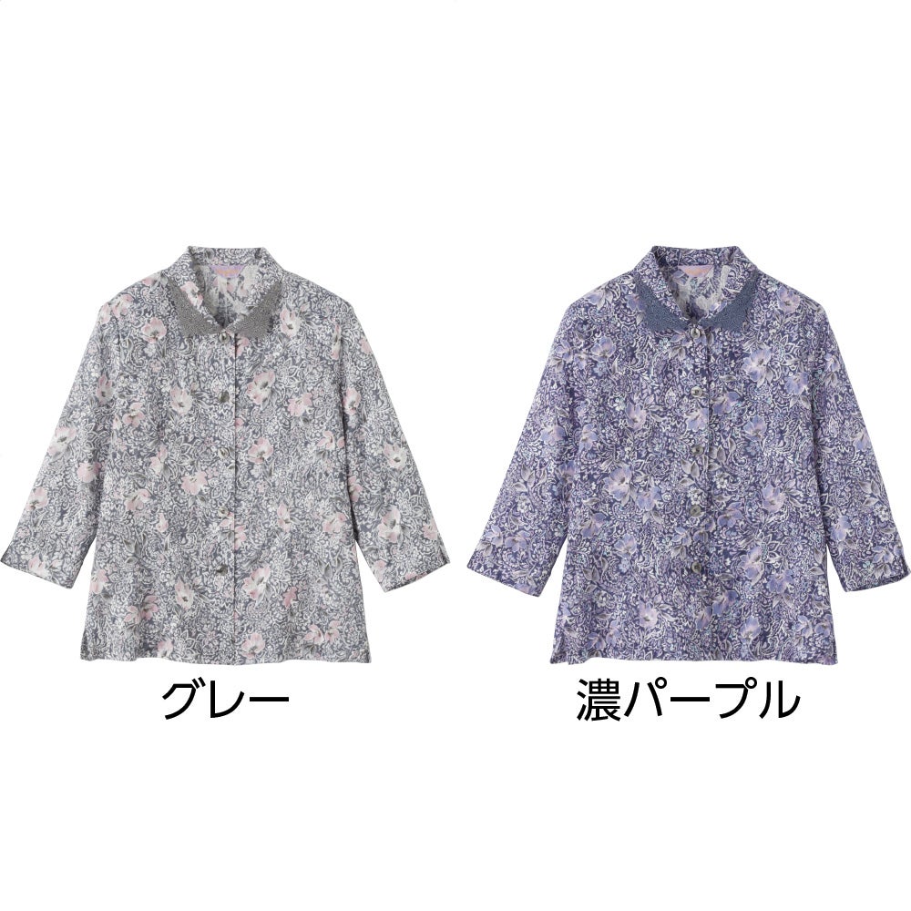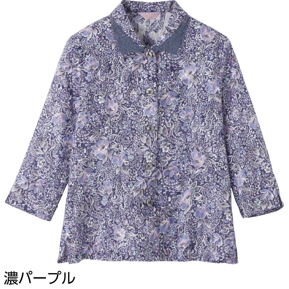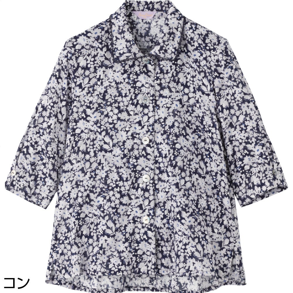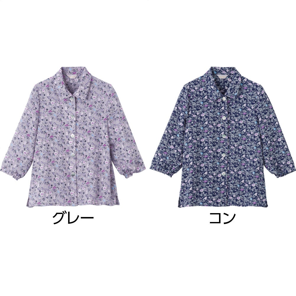 7分袖綿100%花柄ブラウス(婦人)