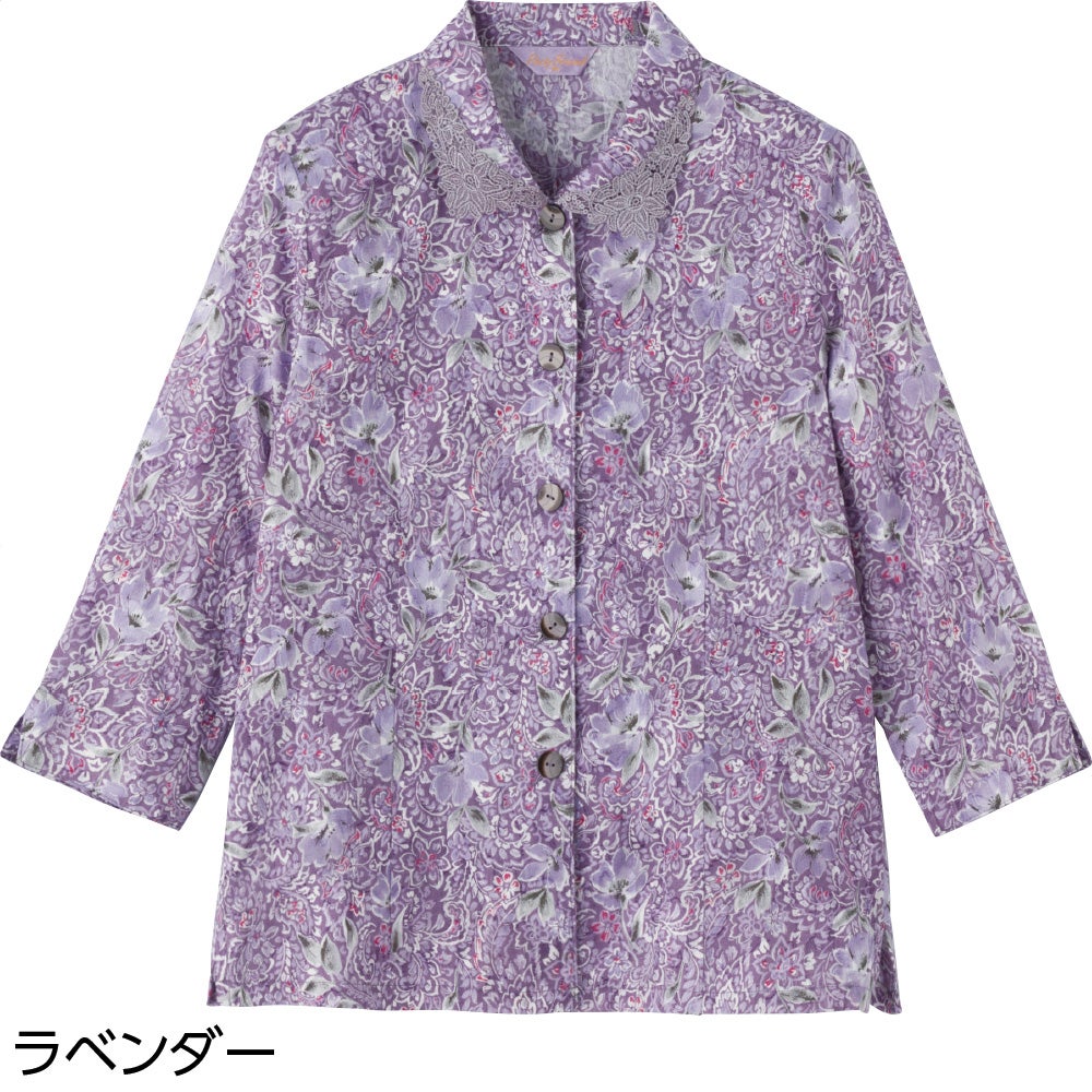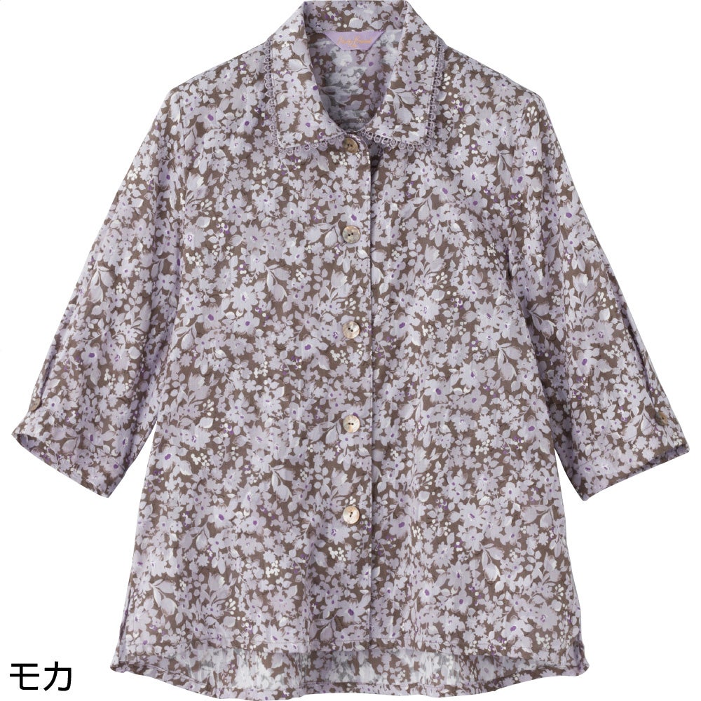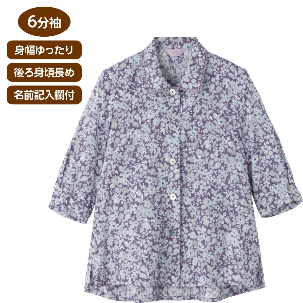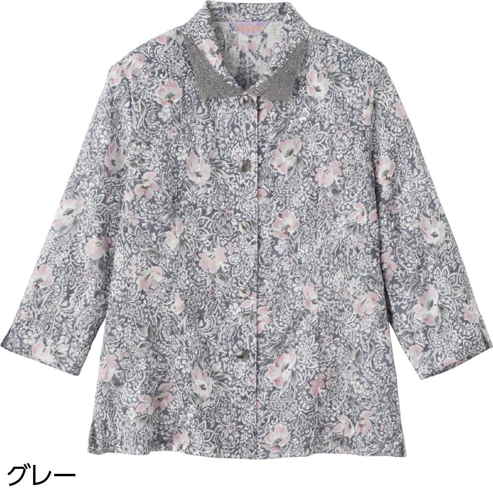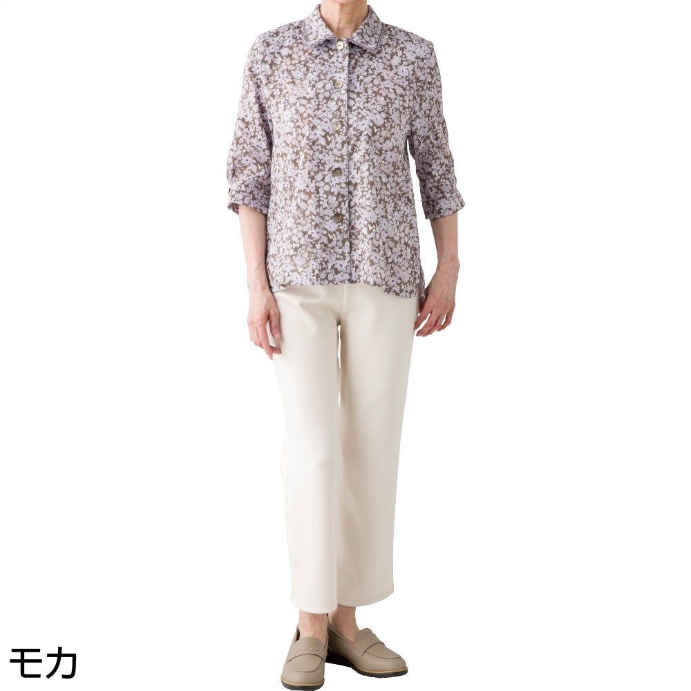7分袖綿100%花柄ブラウス(婦人)