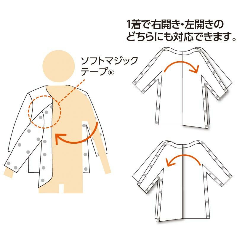 半身麻痺や半身治療箇所のある方の入院介護肌着です。 男女兼用片側脇開き7分袖シャツ サイズ M/L