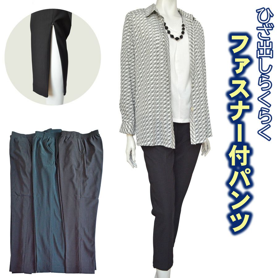 婦人ひざ出しらくらくファスナー付ストレッチパンツ 股下60cm