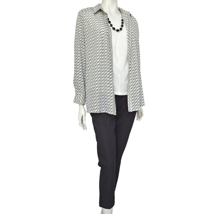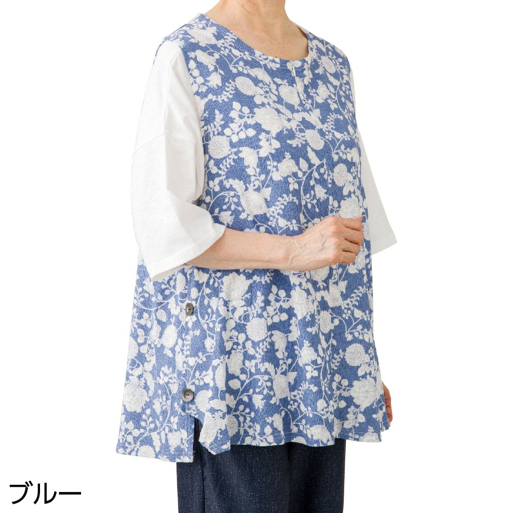 見た目は普通のボタン留めですが、飾りボタンで実際はワンタッチテープ留めの前開きの服ブラウスなのでおしゃれでリハビリや介護にも好適です。