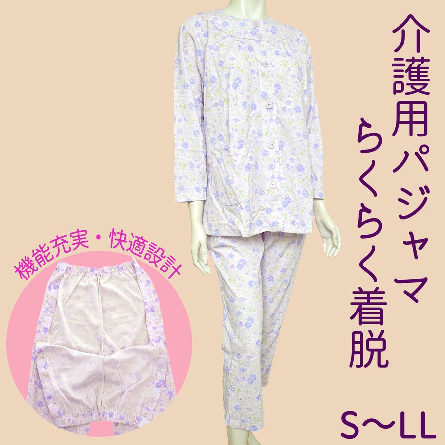 婦人らくらく着脱介護用腰開きパジャマ