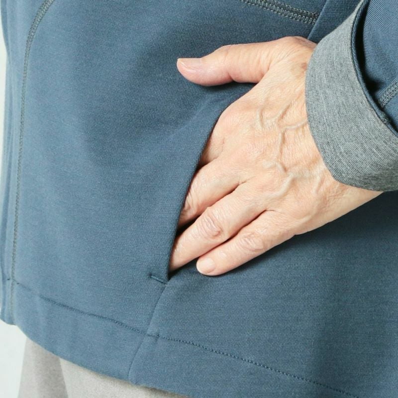 肩が上がりにくい方もスムーズに脱ぎ着ができるロングファスナー・Tシャツです。