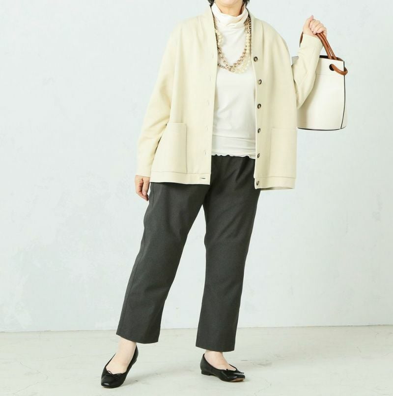 もちもちニット素材なので着心地よくご自宅で丸洗いでるカーディガンです。