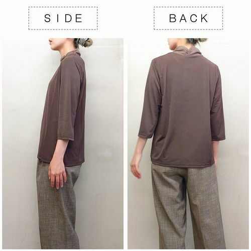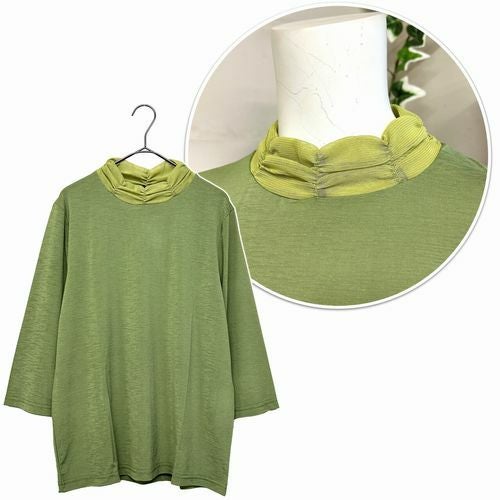 婦人襟ネットシャーリング7分袖Tシャツ