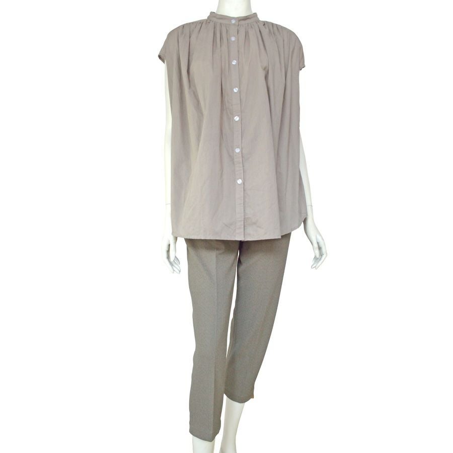 見た目は普通のボタン留めですが、飾りボタンで実際はワンタッチテープ留めの前開きの服ブラウスなのでおしゃれでリハビリや介護にも好適です。