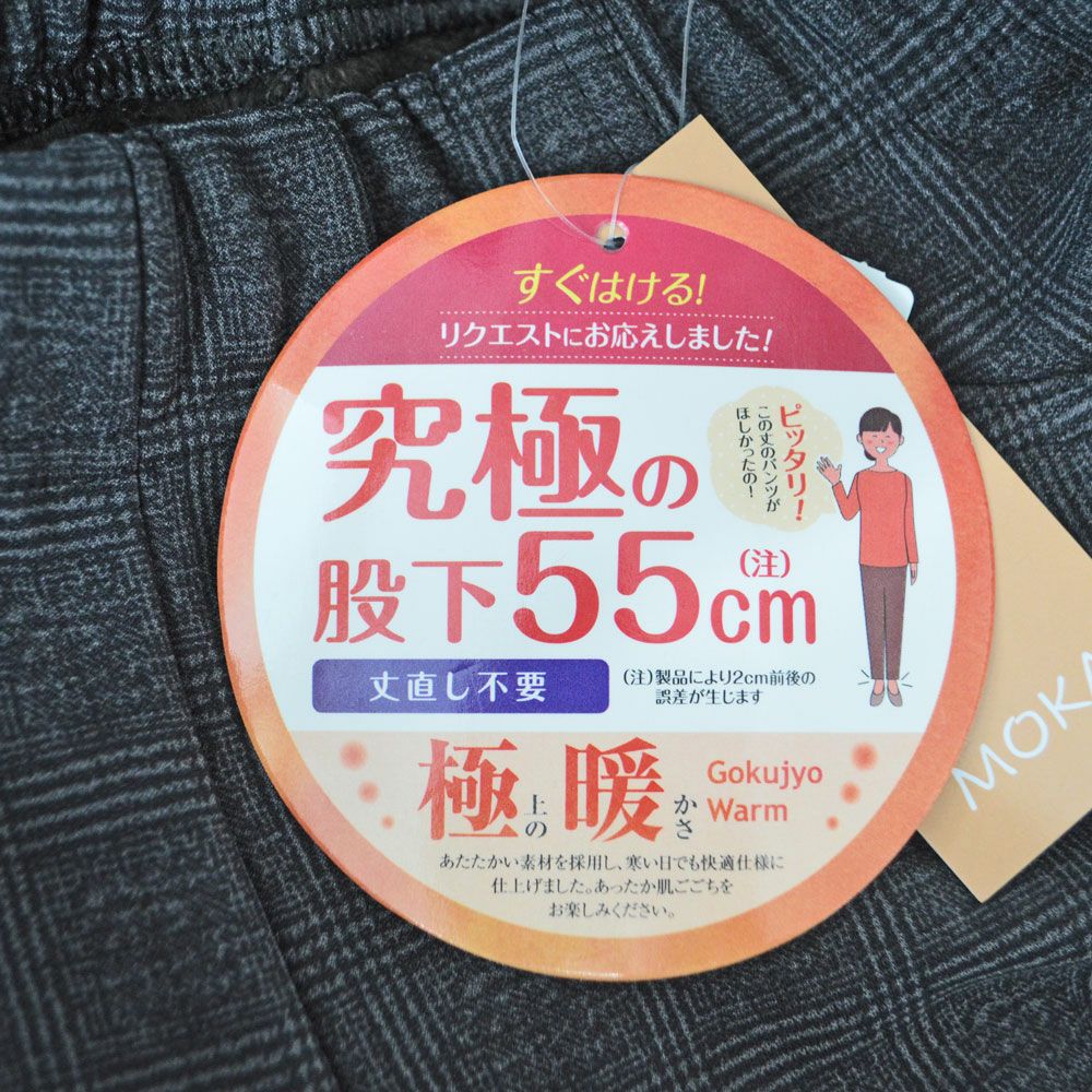 婦人裏シャギー極上の暖かさ究極の股下55cm(格子柄)ストレッチパンツ