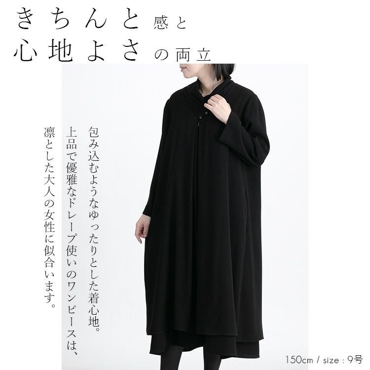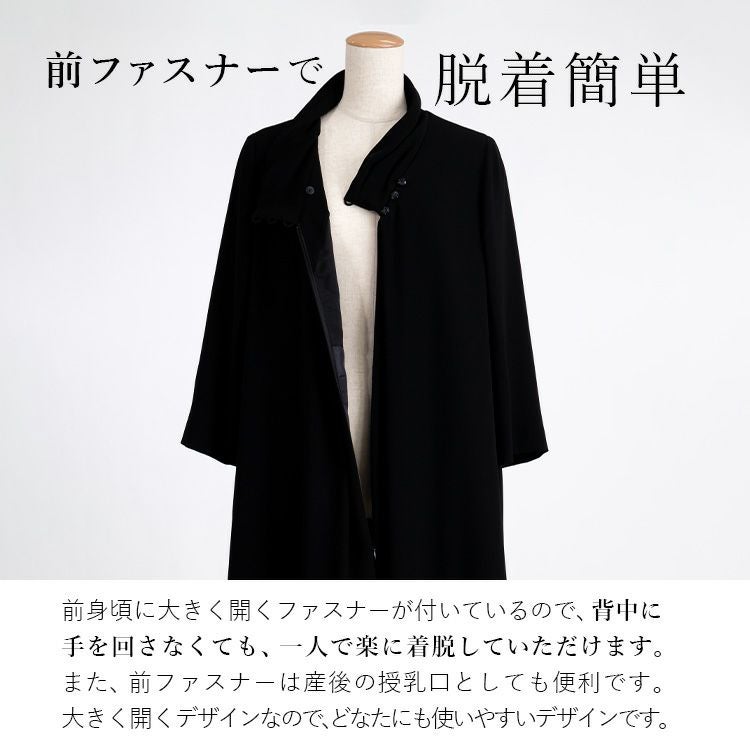 婦人黒礼服ブラックフォーマル前開きファスナーワンピース M L LL