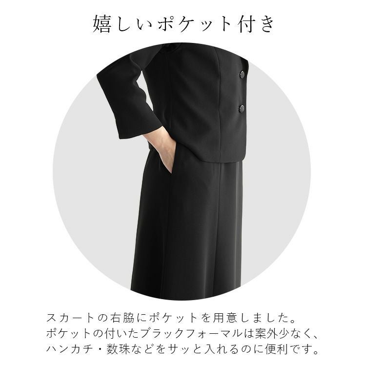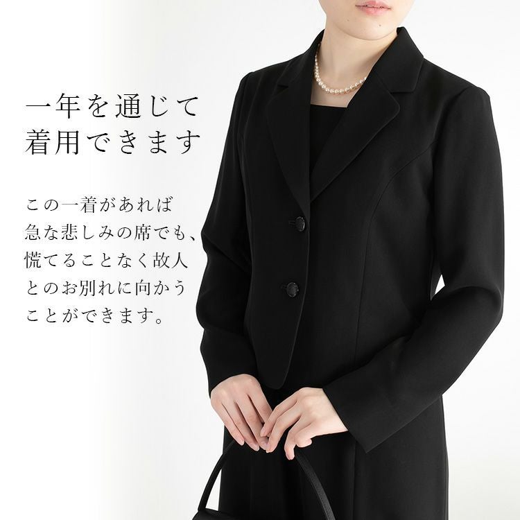 婦人黒礼服ジャケット付き風前開ブラックフォーマルワンピース 9号-17号