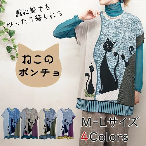 婦人ねこ柄ノースリーブチュニックゆったりポンチョ
