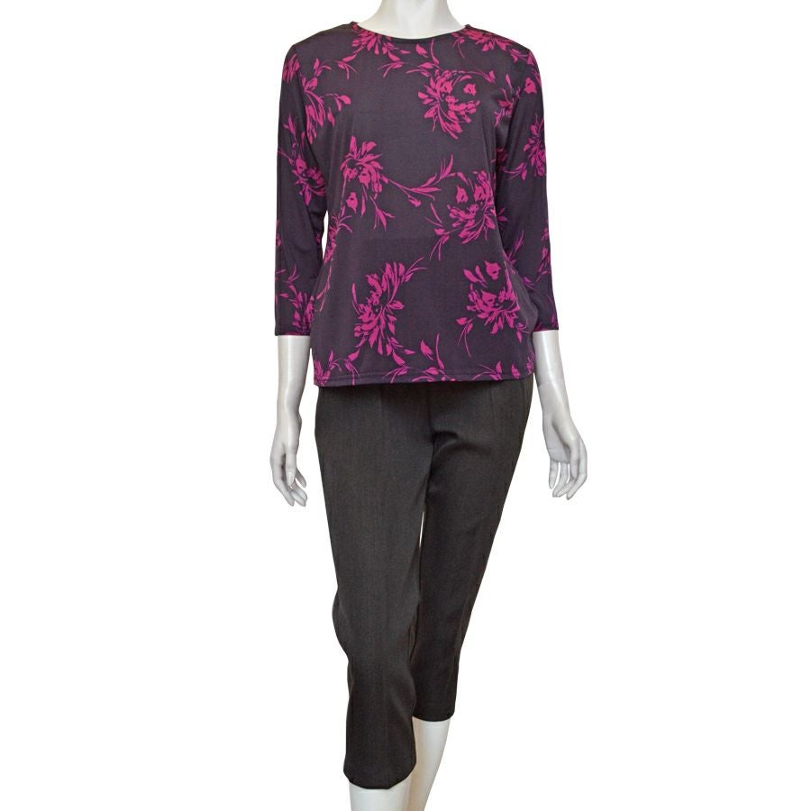 見た目は普通のボタン留めですが、飾りボタンで実際はワンタッチテープ留めの前開きの服ブラウスなのでおしゃれでリハビリや介護にも好適です。