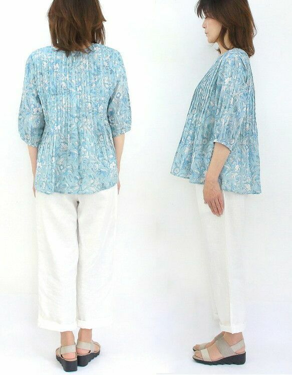 さりげなく華やぐピンタックブラウス。