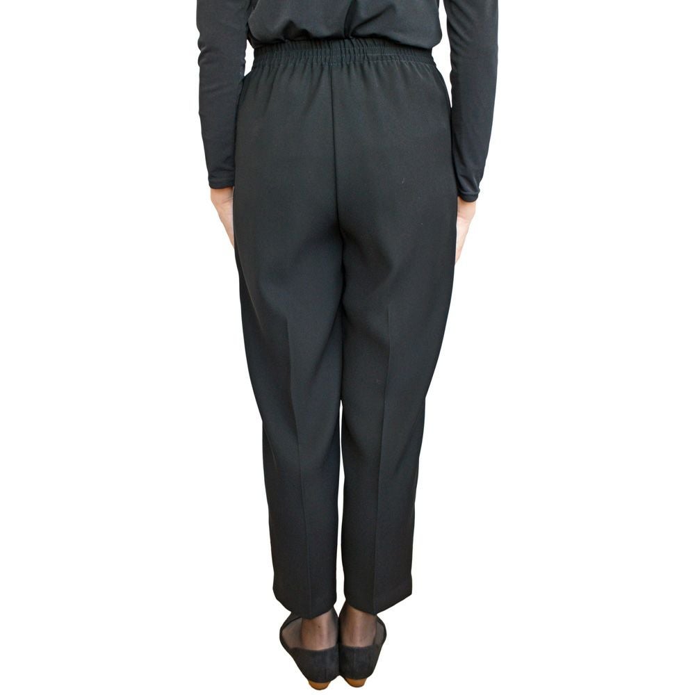 縦横に伸縮性があり、やわらかく弾力のあるストレッチ生地を使用したブラックフォーマルパンツです。
