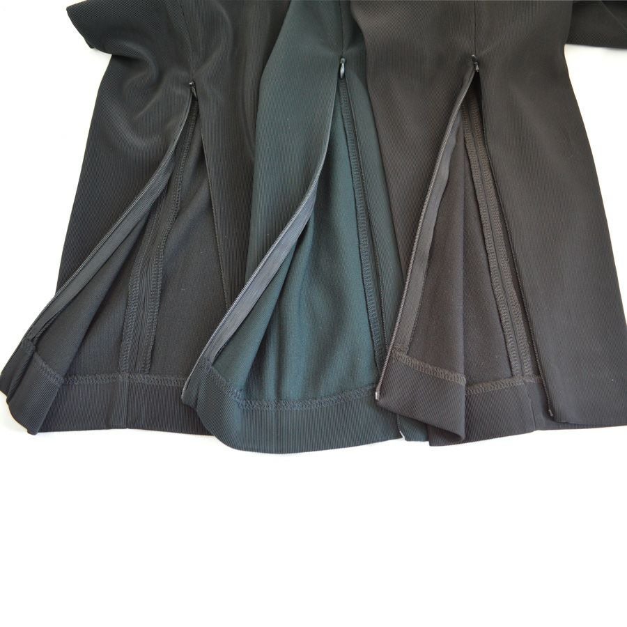 ファスナー合わせが不要の、お腹部分までで止まる長めのファスナー