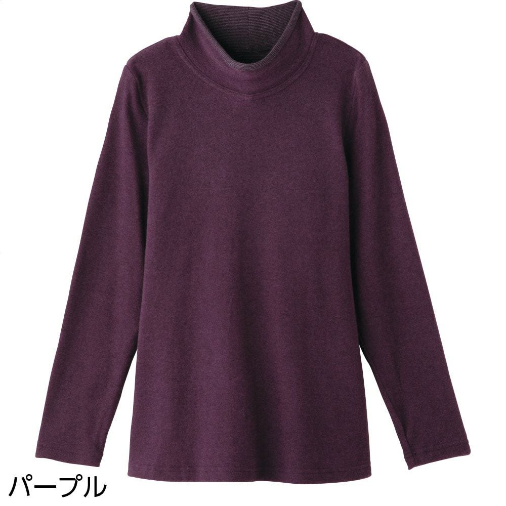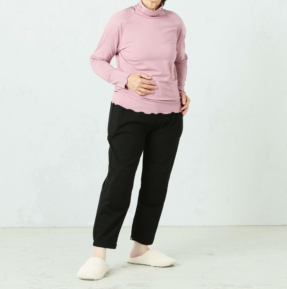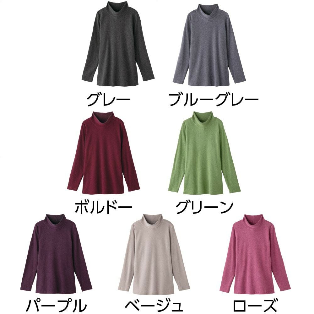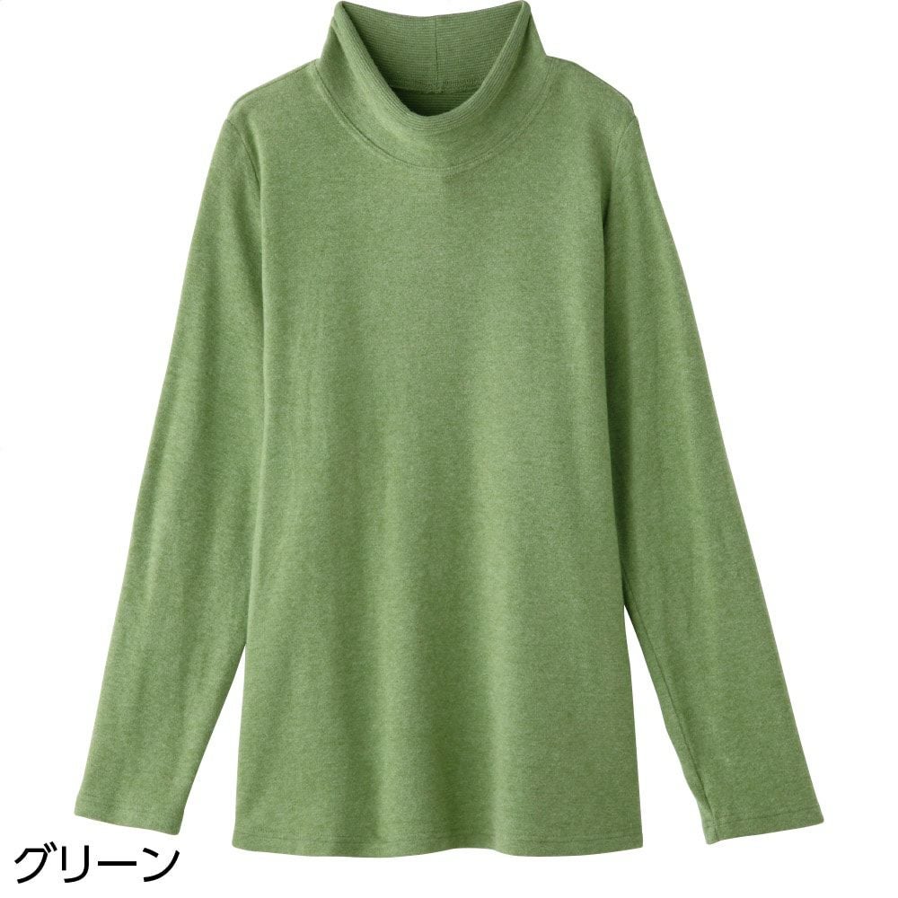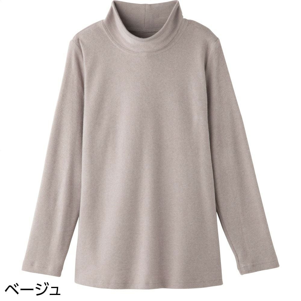 程よい高さのハイネック、身体のラインを拾いにくいAラインシルエットで、安心感のある着心地です。