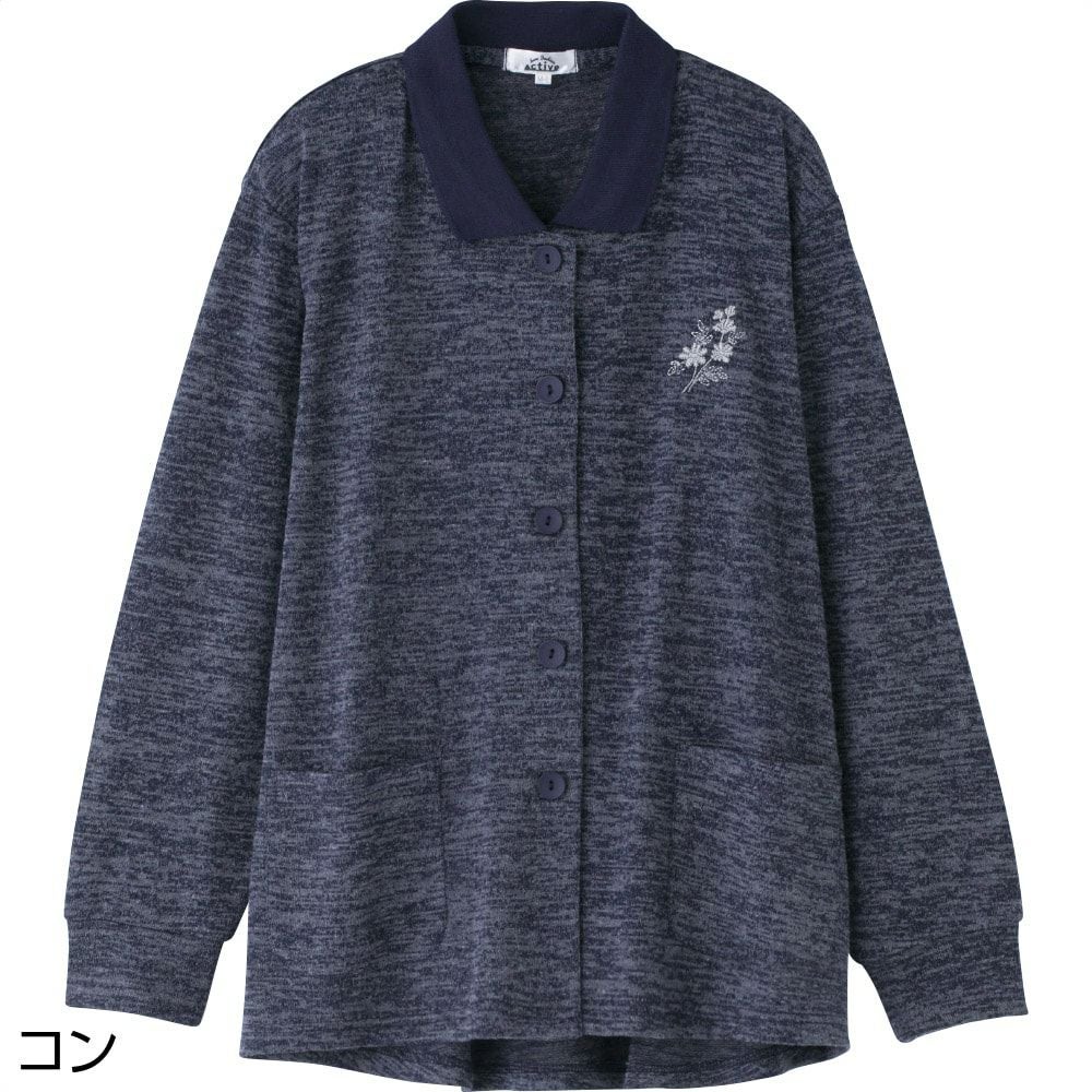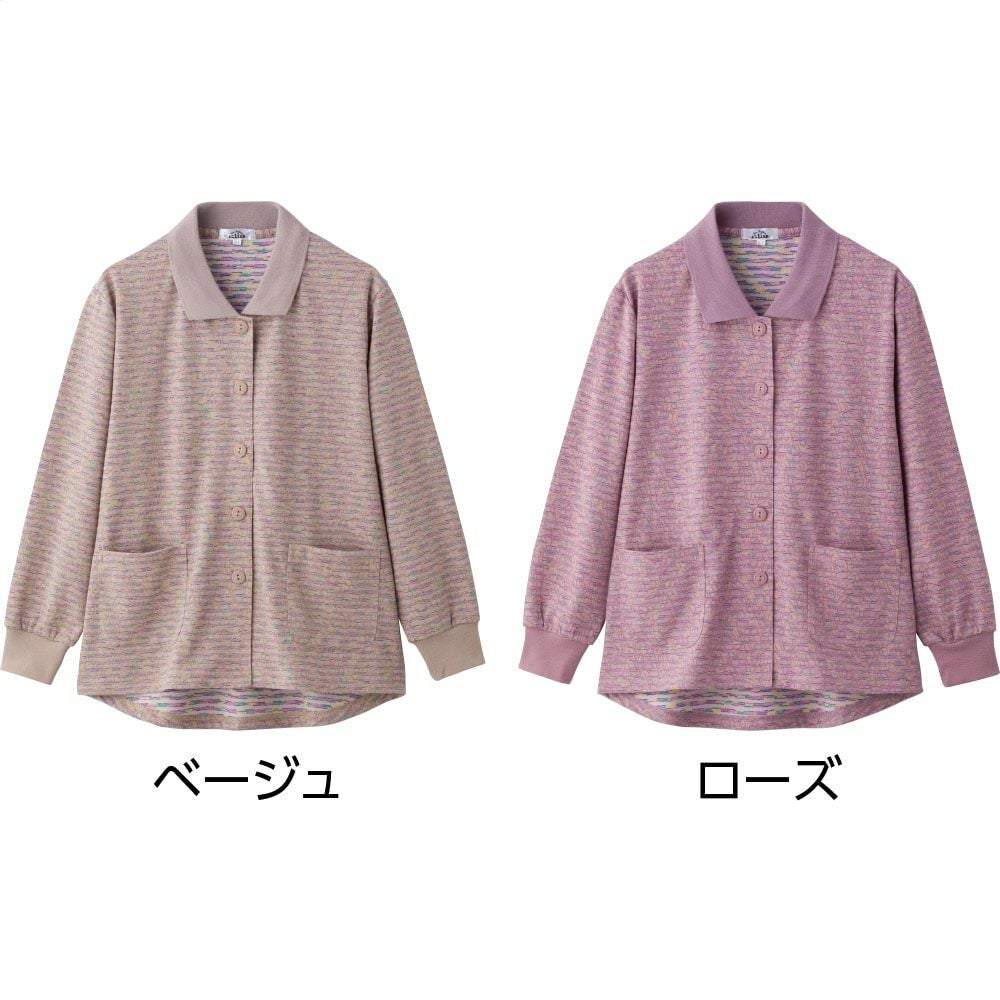着脱楽なポロ襟の前開きカーデイガンです。