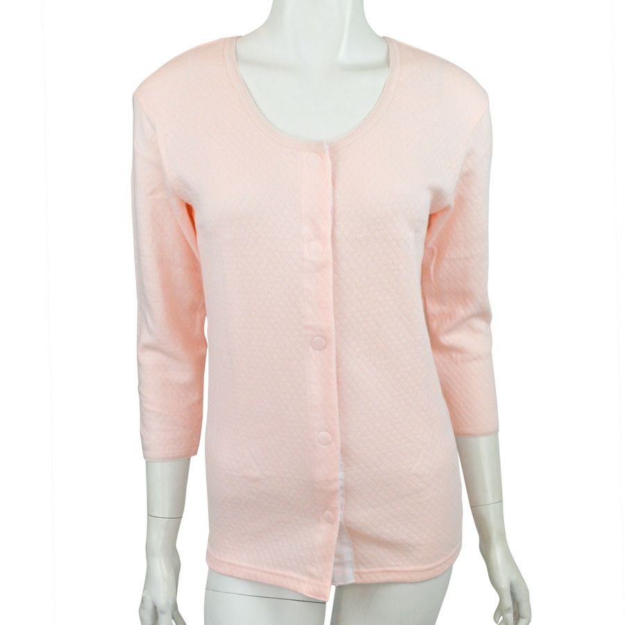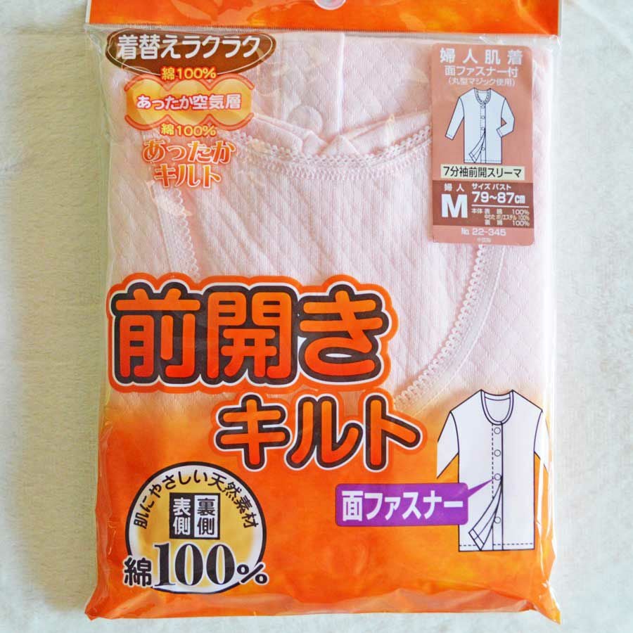 婦人キャロン着脱らくらくホック式ワンタッチ前開き7分袖肌着(2枚組)