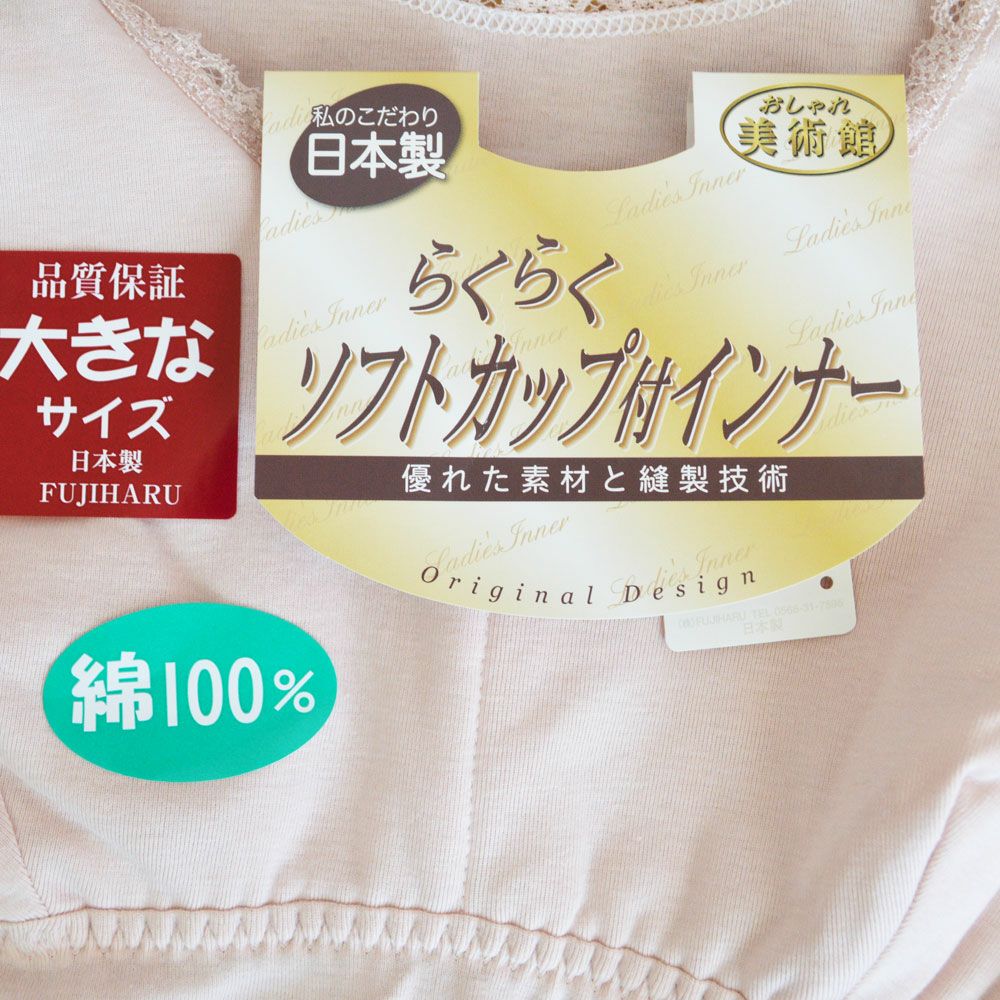 肌に優しい綿100%のカップ付インナー。