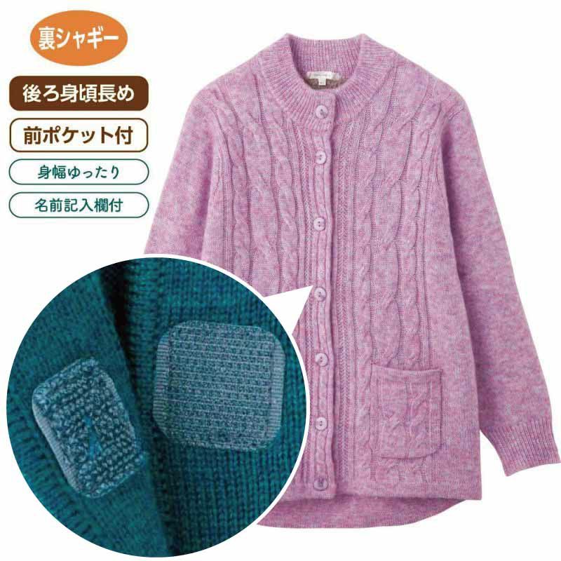 婦人背中裏シャギーニットワンタッチテープカーディガン